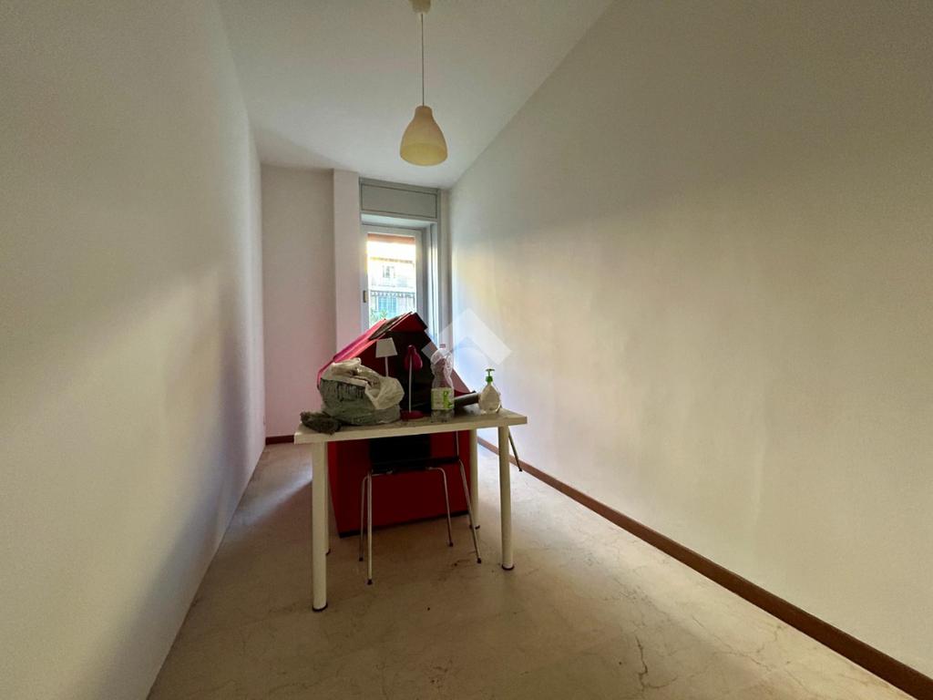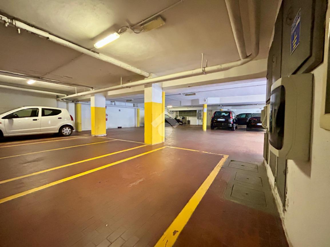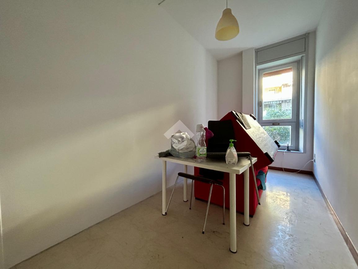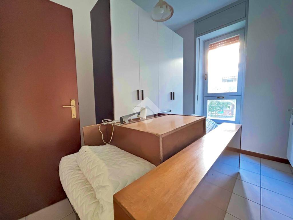 All'interno di una tranquilla palazzina dei prini anni '70, proponiamo appartamento quadrilocale in buone condizioni. L'immobile si sviluppa al piano rialzato, servito da ascensore, con distribuzione tipica dell'epoca. Accediamo alla zona giorno, che al momento è adibita a camera matrimoniale, con attigua cucina abitabile separata. Proseguendo la zona notte con i due bagni finestrati, di cui uno con doccia e vasca, camera studio e due camere matrimoniali. I serramenti sono in vetro doppio/legno. Il riscaldamento è centralizzato con fornitura di acqua calda sanitaria tramite teleriscaldamento. Completano la soluzione cantina e posto auto coperto.