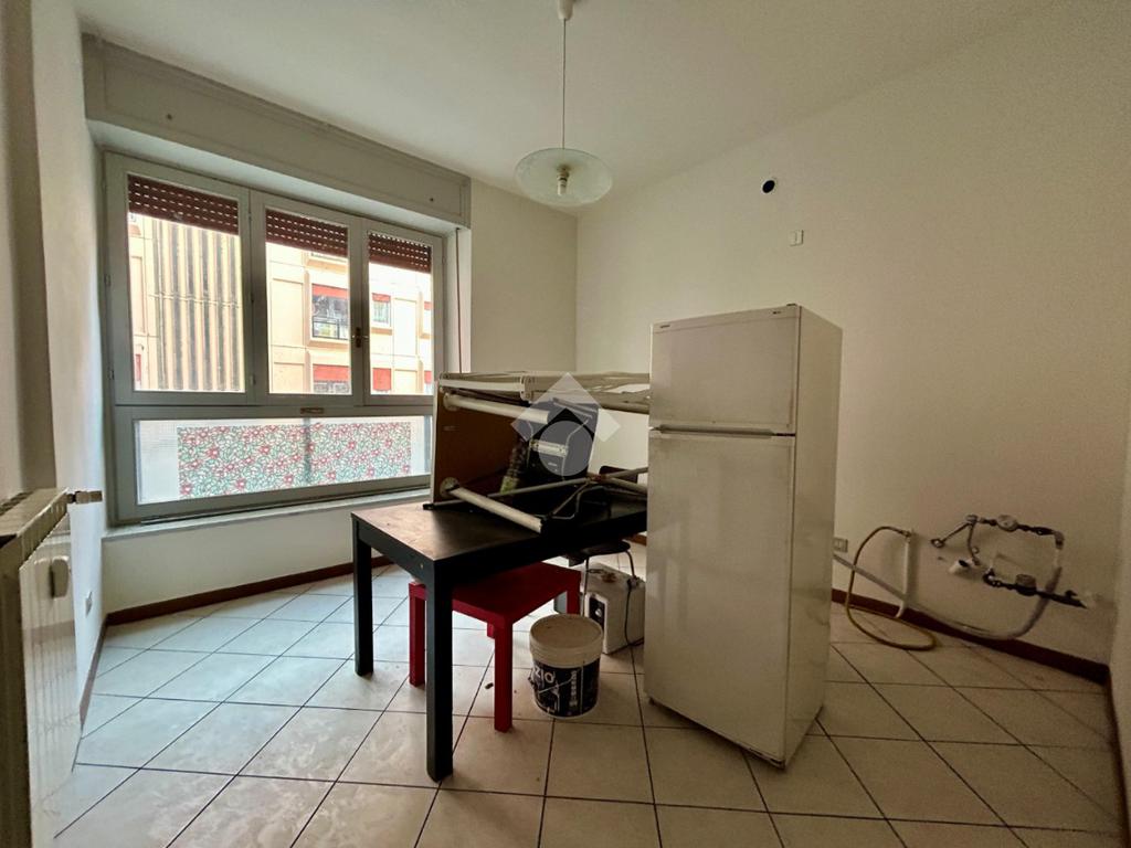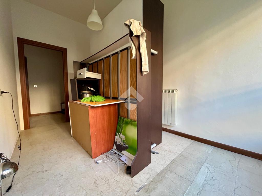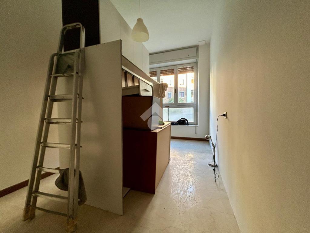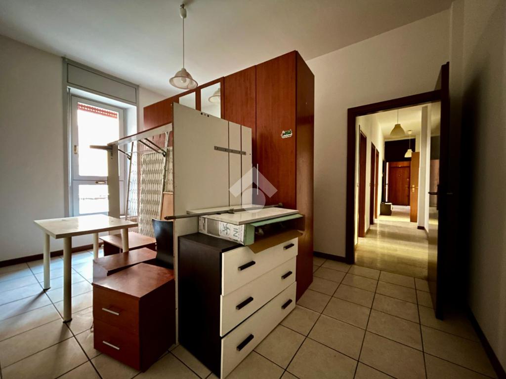 All'interno di una tranquilla palazzina dei prini anni '70, proponiamo appartamento quadrilocale in buone condizioni. L'immobile si sviluppa al piano rialzato, servito da ascensore, con distribuzione tipica dell'epoca. Accediamo alla zona giorno, che al momento è adibita a camera matrimoniale, con attigua cucina abitabile separata. Proseguendo la zona notte con i due bagni finestrati, di cui uno con doccia e vasca, camera studio e due camere matrimoniali. I serramenti sono in vetro doppio/legno. Il riscaldamento è centralizzato con fornitura di acqua calda sanitaria tramite teleriscaldamento. Completano la soluzione cantina e posto auto coperto.